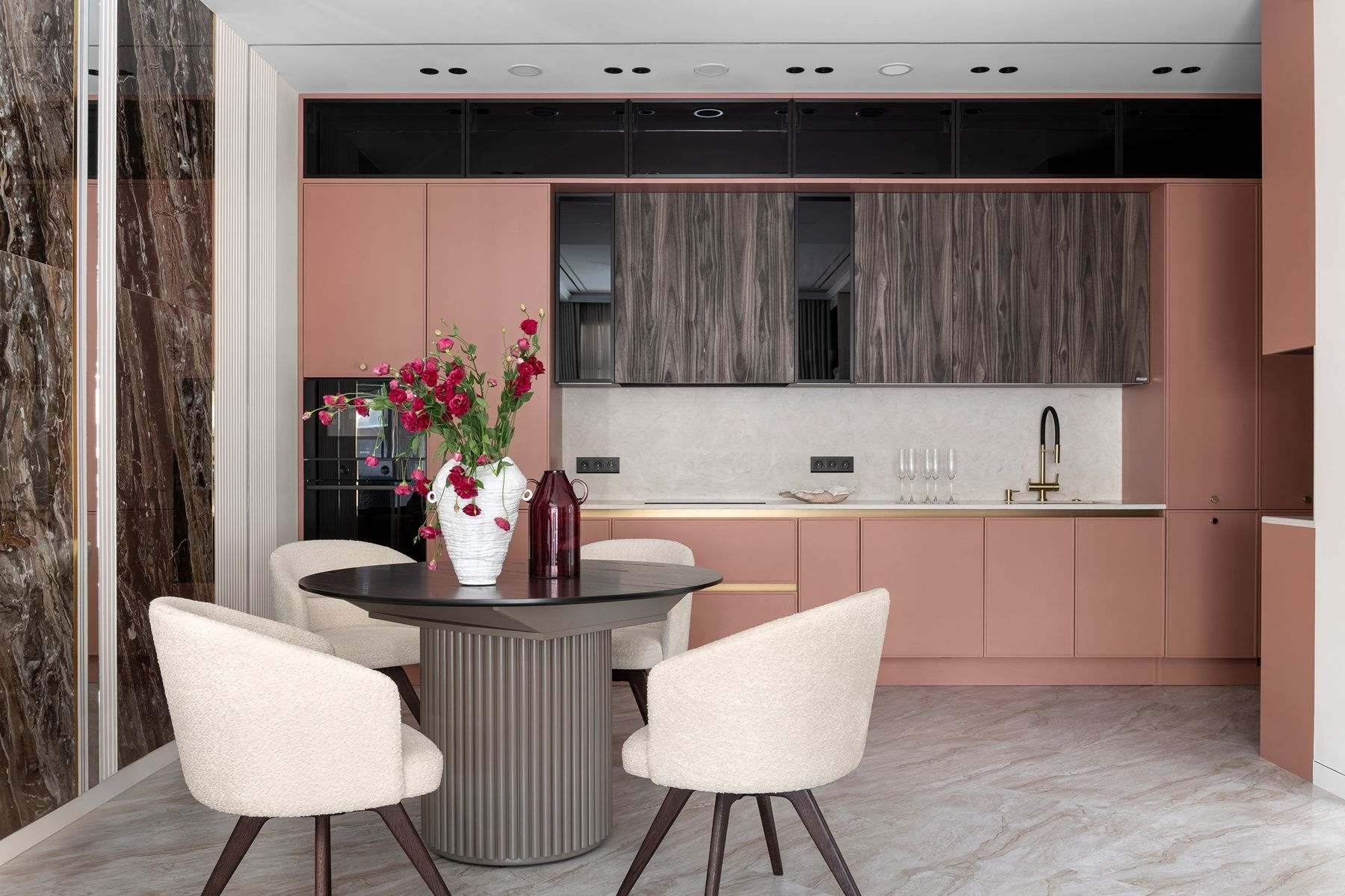 Современная кухня в терракотово-коралловом цвете