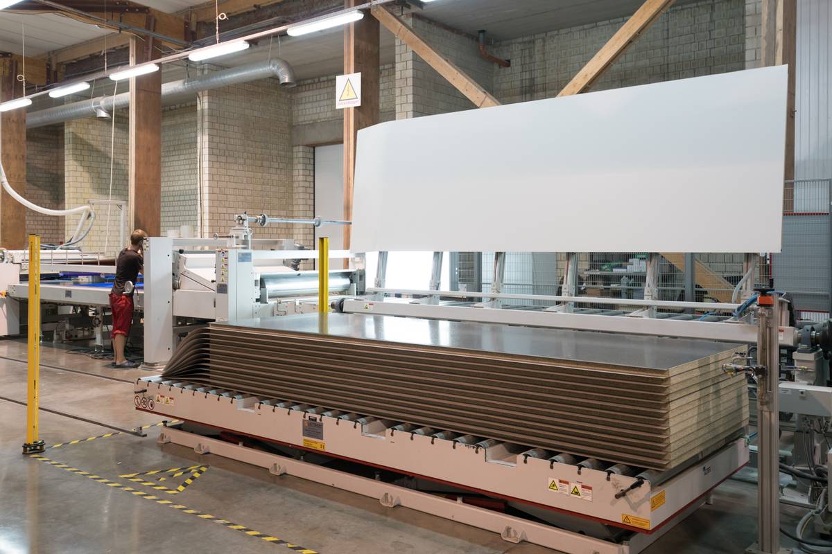 На станке Holmza (Германия) лист ДСП распиливается на части нужных размеров. Оборудование управляется компьютером — погрешность при раскрое минимальна. Материал располагается на воздушной подушке, которая защищает его от царапин.