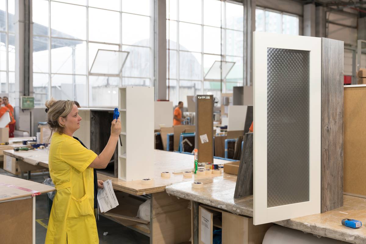 Здесь декорируют готовые фасады и столовые группы, прибывшие из Италии
